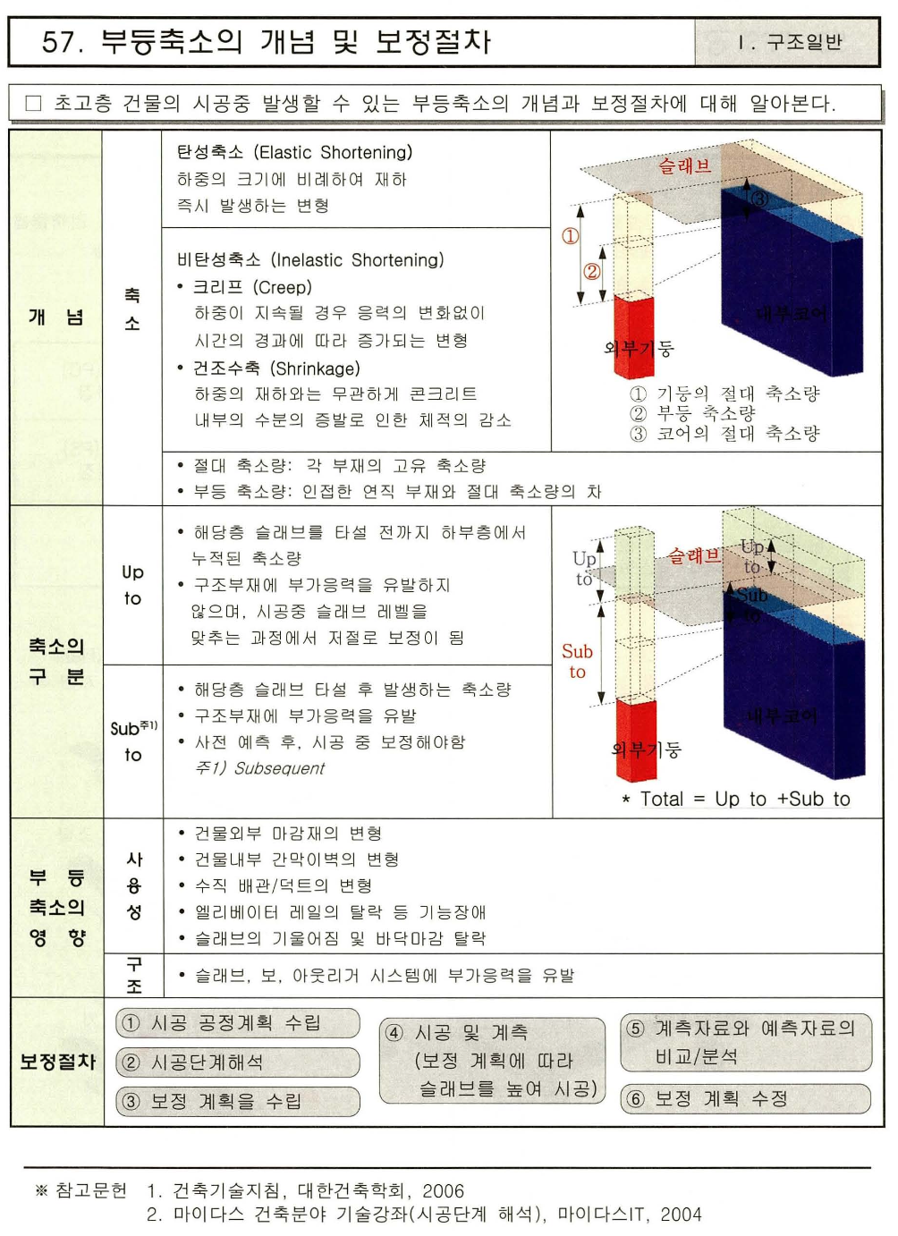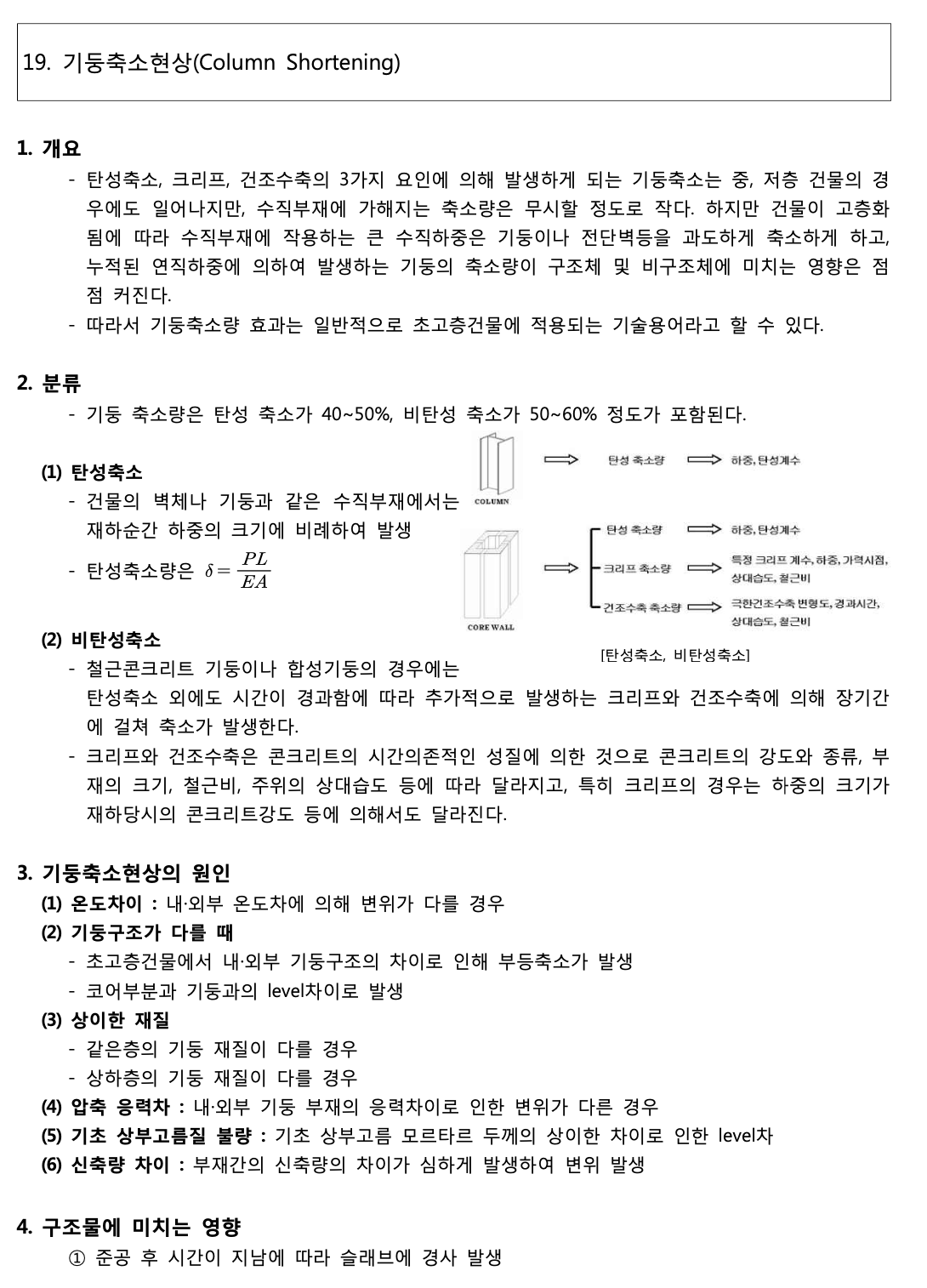 (칼럼 쇼트닝) 기둥축소란? 기둥축소 발생원인 기둥축소 보정방법 부등축소란? 부등축소의 문제점 부등축소의 해결방안 시공단계해석 기둥축소량 현장계측