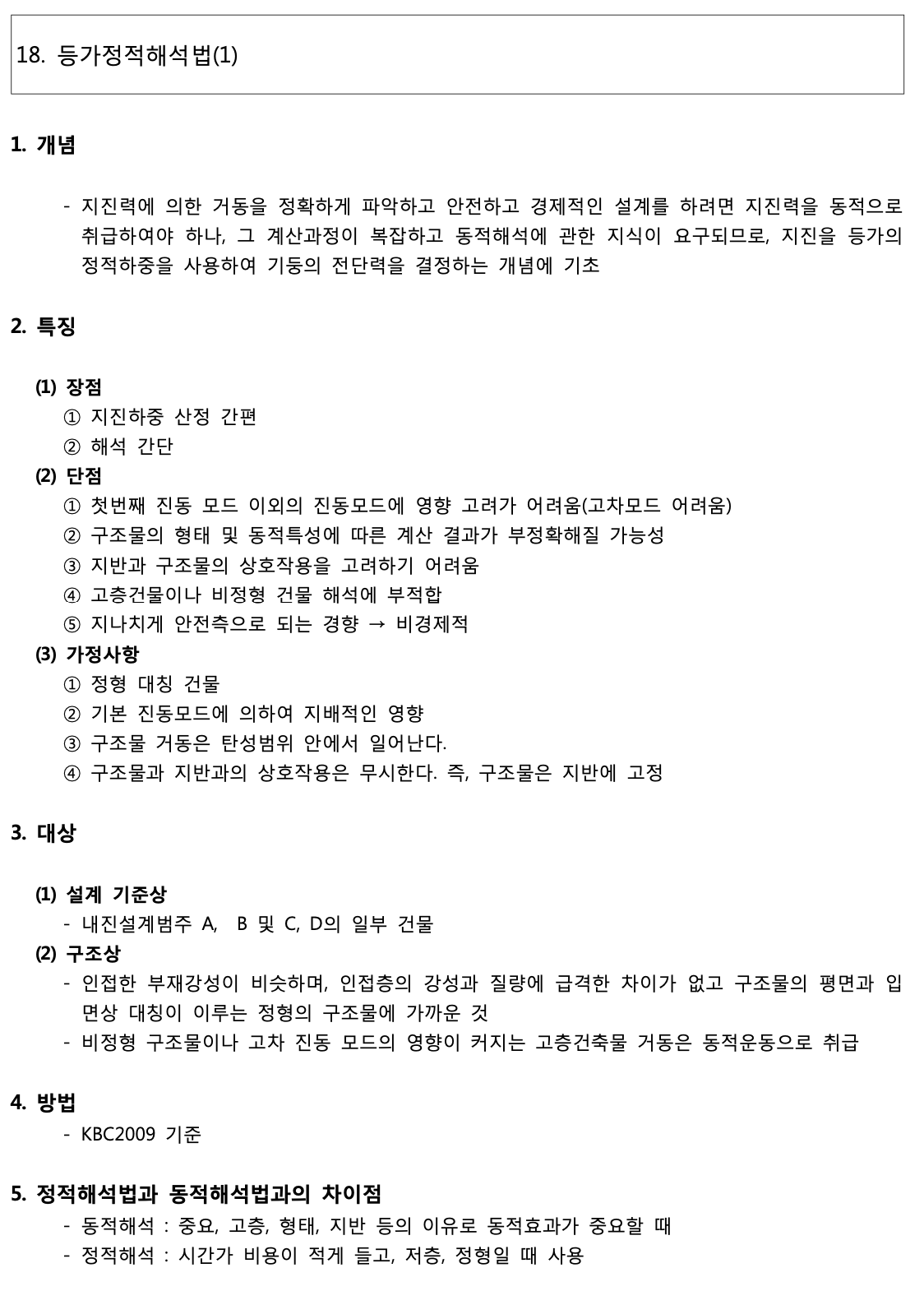 - 동적하중을 등가의 정적하중으로 치환, 1차모드만 고려, 고차모드는 간접고려(연직분포)