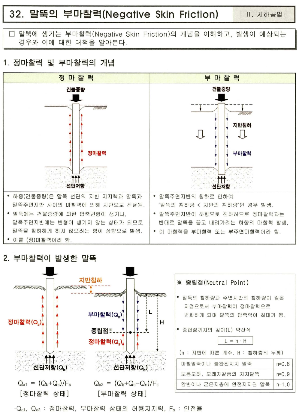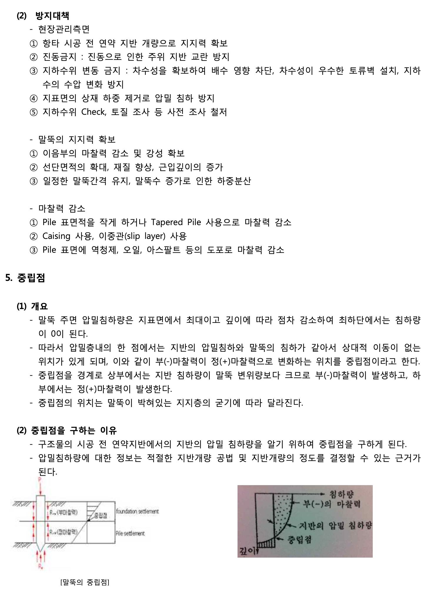 말뚝의 부마찰력, 중립점에 대해서 설명하시오. 말뚝의 부마찰력의 발생원인 및 저감방안에 대해 설명하시오.