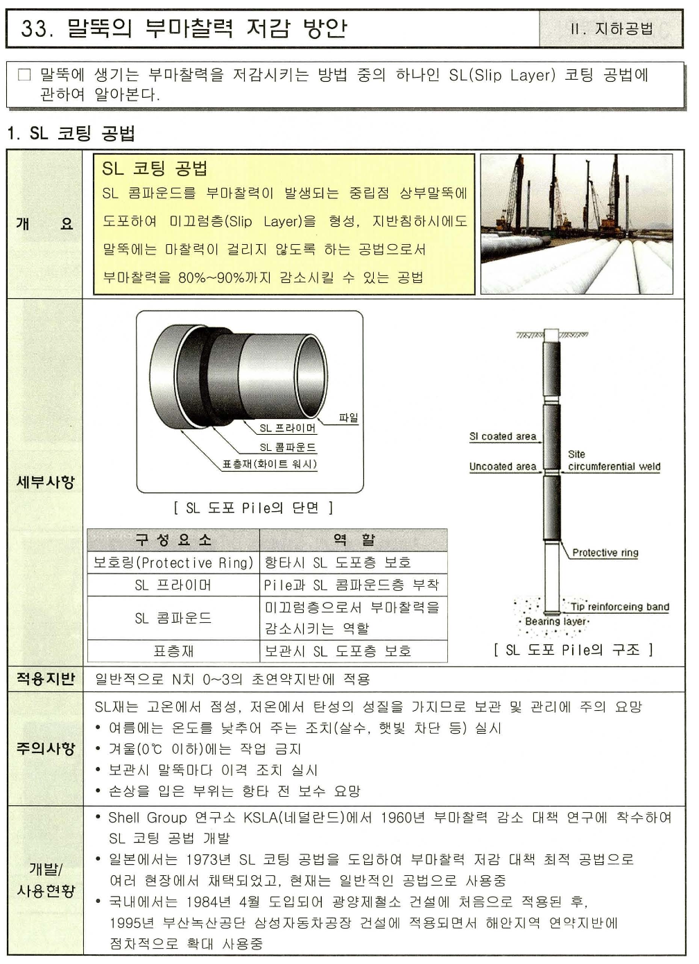 - 가능한 직경이 작은 Pile을 사용하여 마찰력을 감소시킨다.