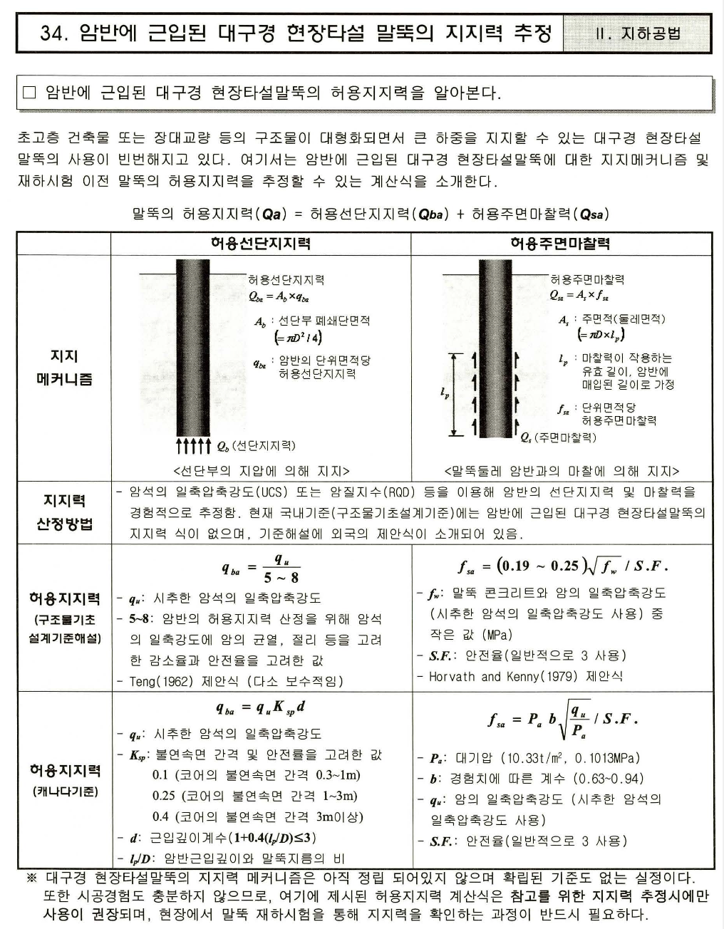 - 말뚝기초의 추정지지력 공식에 의한 산정법