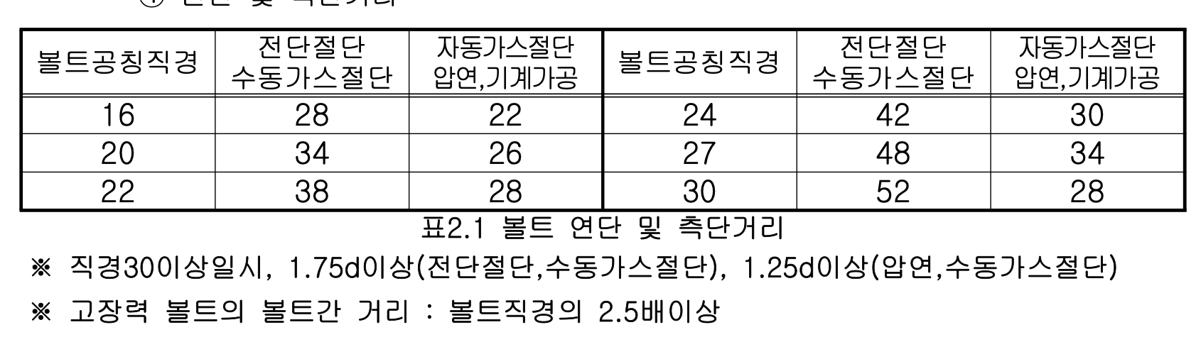 전단절단 / 수동가스절단 : 일반적인 경우 볼트 구멍은 2차가공