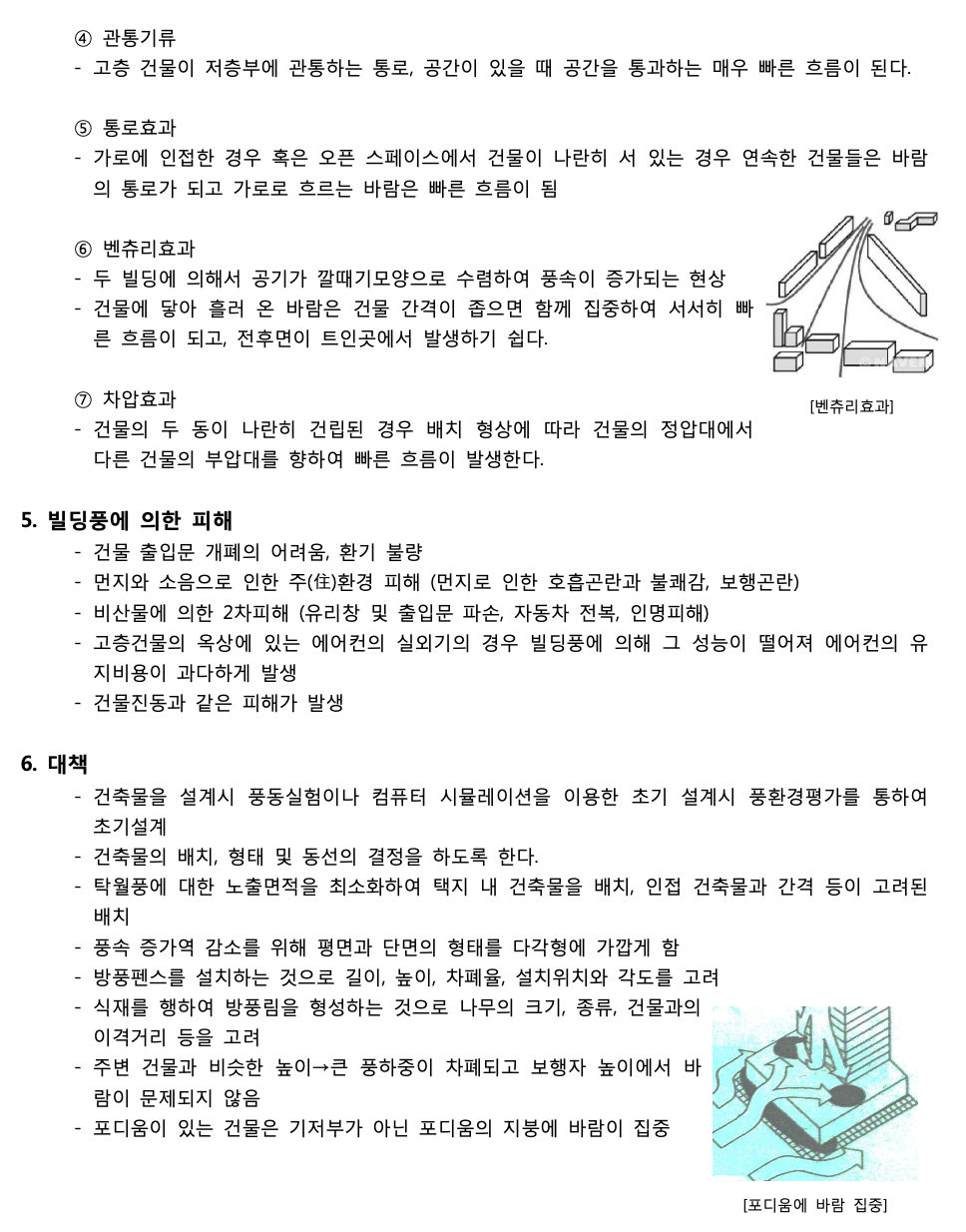 - 관통풍 : 고층건물과 고층건물의 사이에 풍속이 증가되는 현상