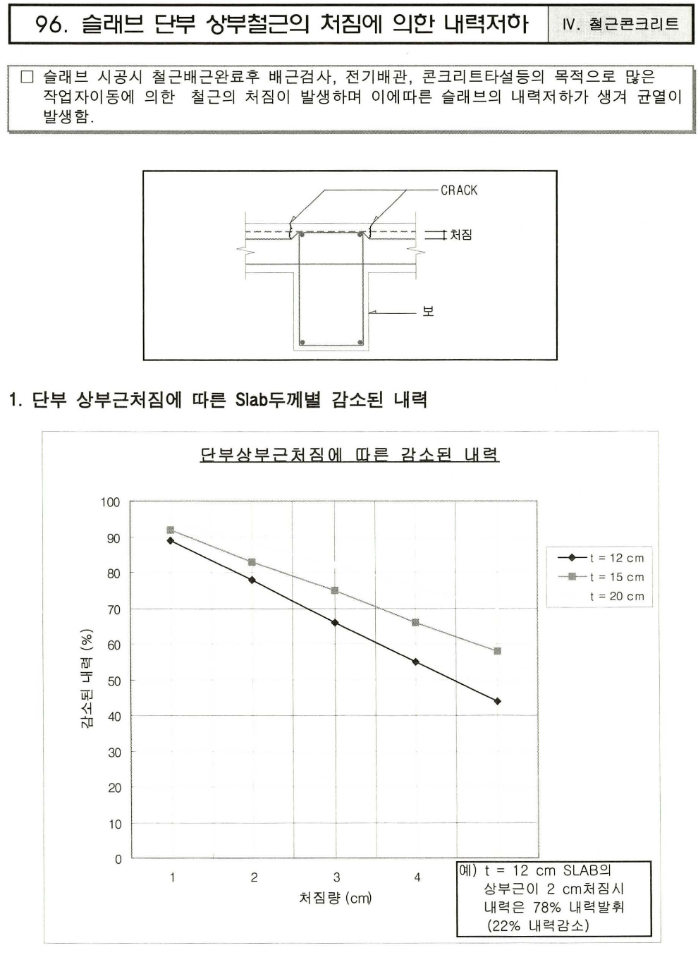 슬래브 상부근 처짐에 의한 내력감소