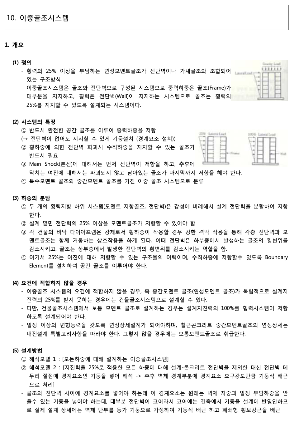 - 횡력의 25% 이상을 부담하는 연성모멘트골조가 전단벽이나 가새골조와 조합되어 있는구조방식