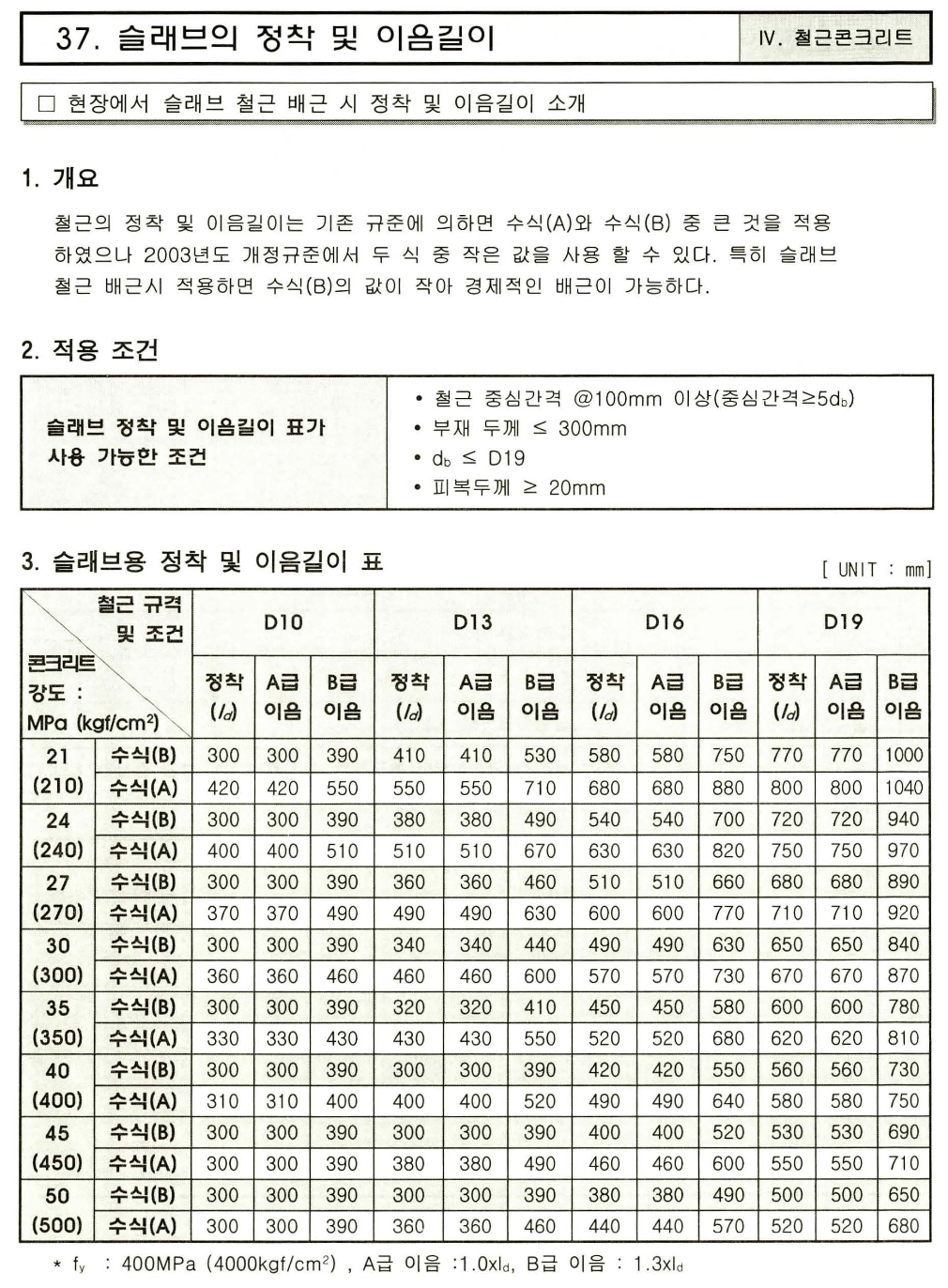 - 상부 : 1.3 (아래 300 mm 이상 굳지 않은 콘크리트가 있는 경우)