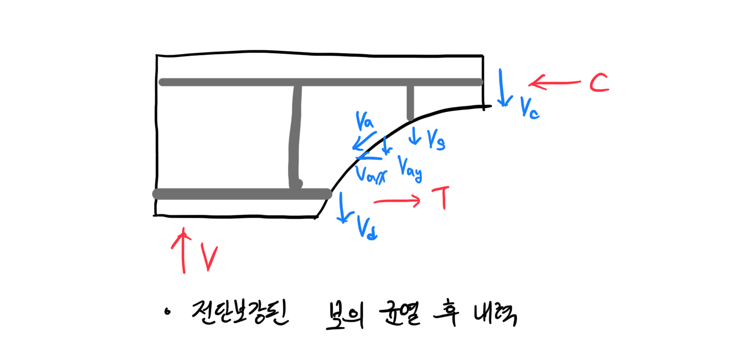 - 사인장 균열 전까지는 는 전단력 지지에 아무런 기여를 하지 않는다.