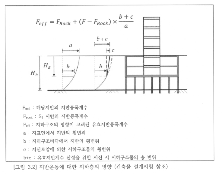 - 지진 시 지반운동에 의한 지표면의 변위와 지진토압에 의한 지하구조물의 변위의 비율에 따라 지상구조에 작용되는 지반증폭계수를 조정