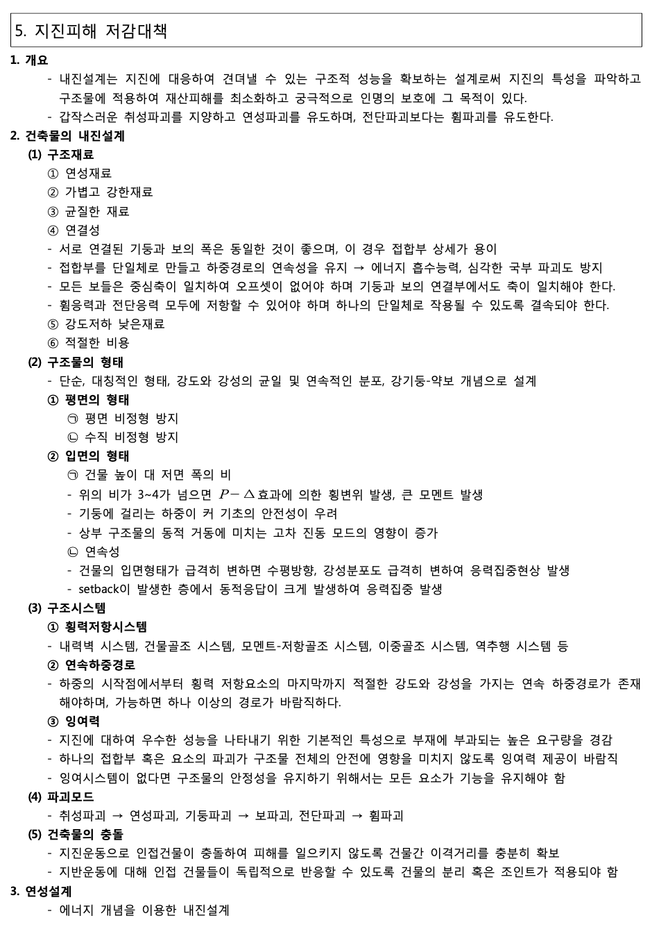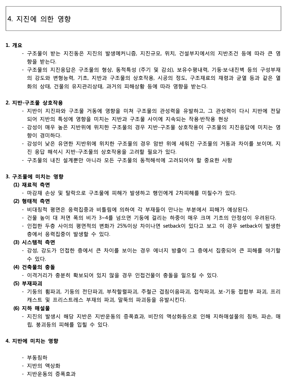 - 대책 : 건물간 이격거리를 확보, 건물의 분리 혹은 조인트의 적용