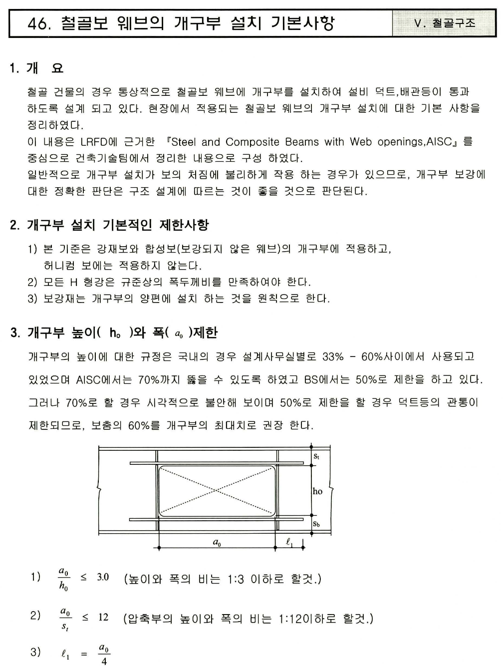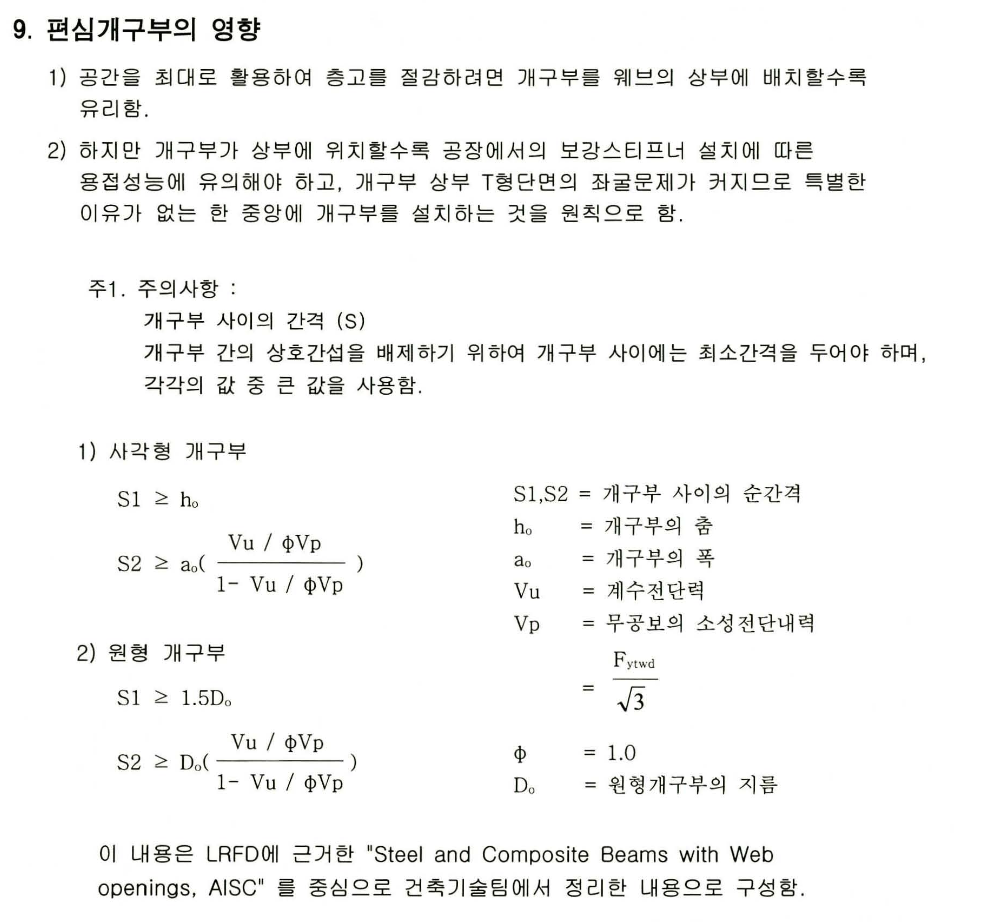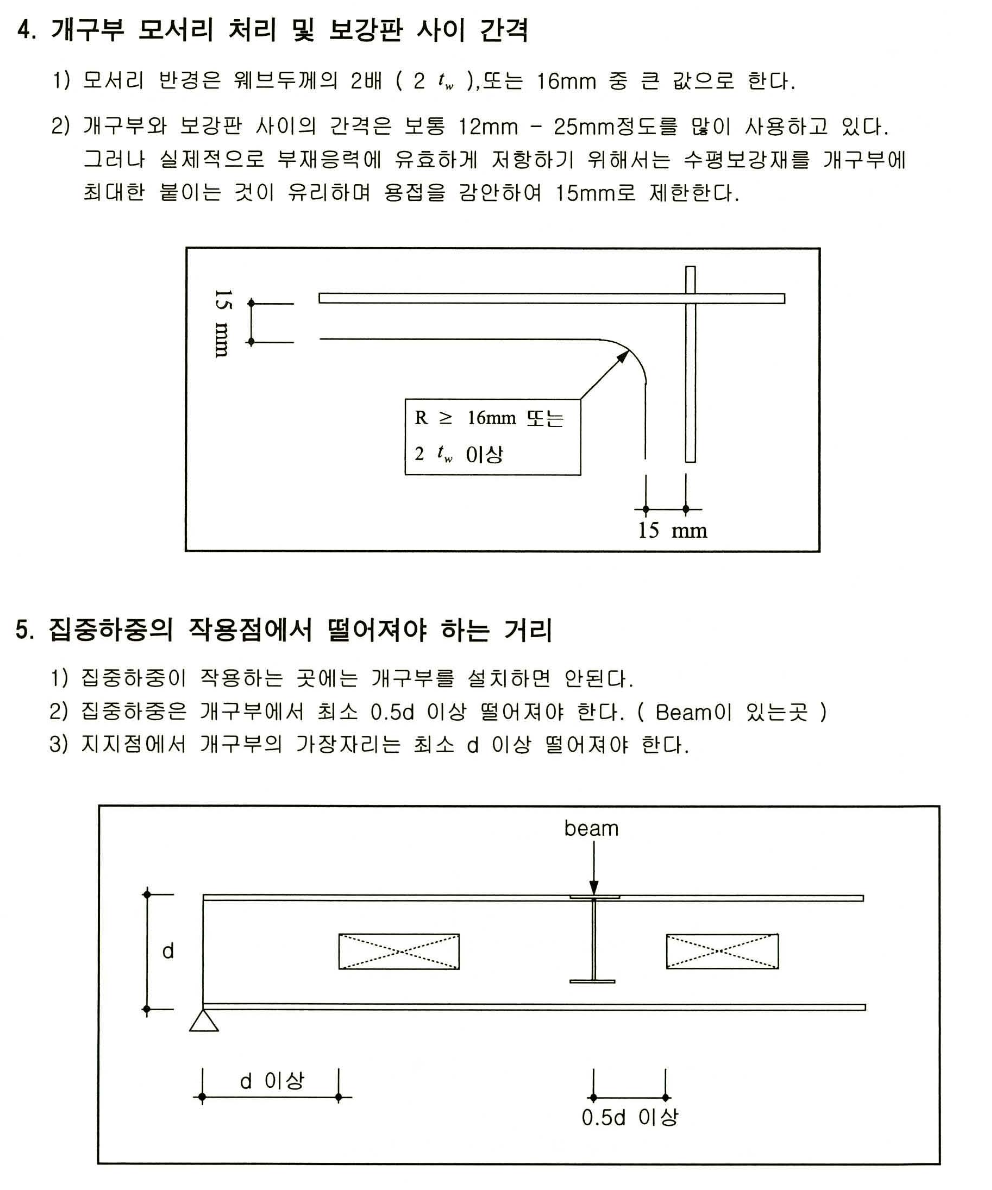 - 강재보와 합성보의 개구부에 적용하고 허니컴보에는 적용하지 않는다.