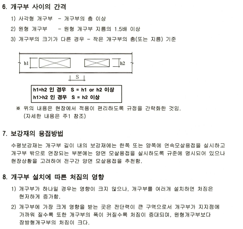 - 개구부와 보강판 사이 간격은 12~25mm 정도