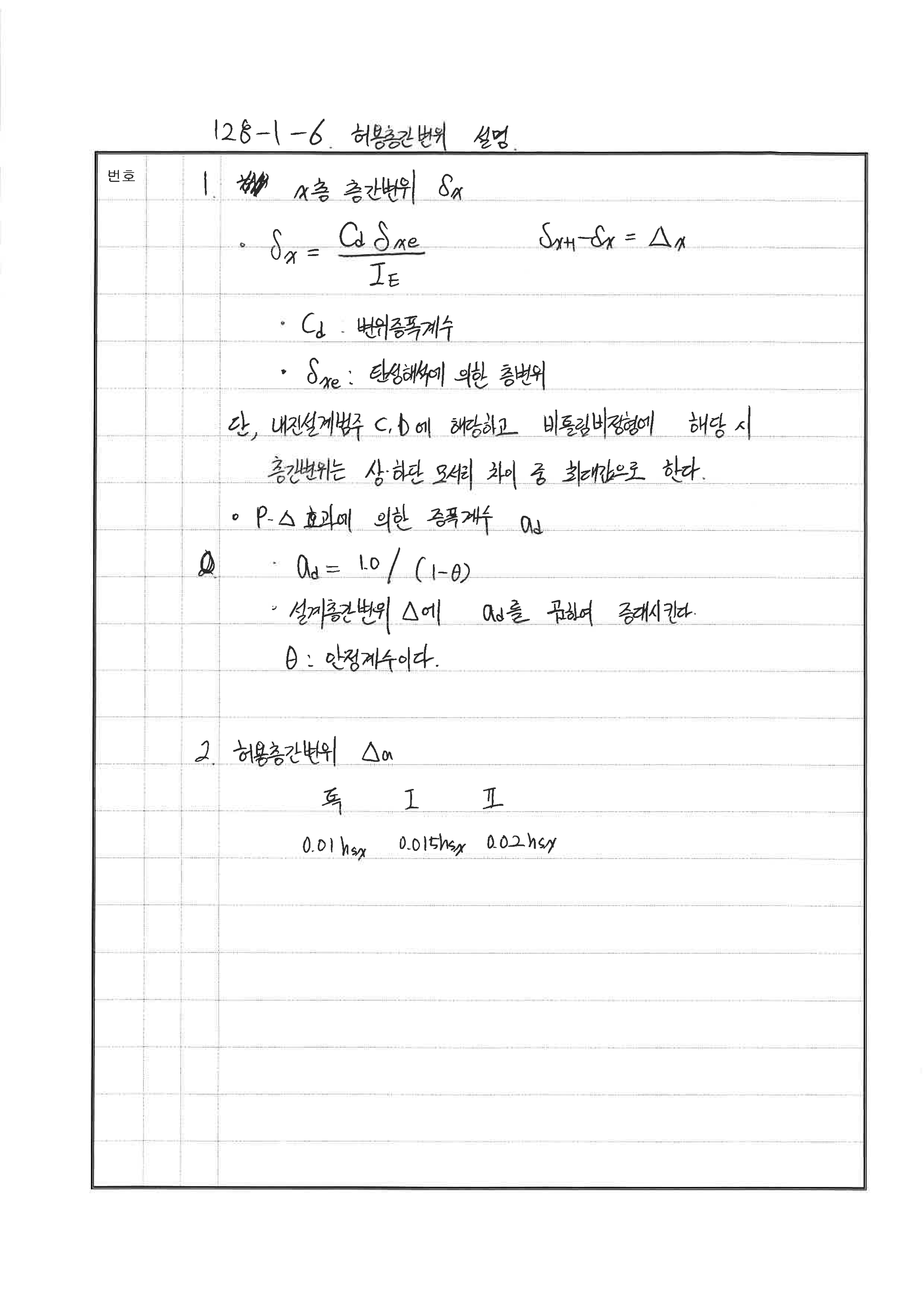 허용층간변위 : 비탄성변형시 붕괴를 방지하기 위한 변위