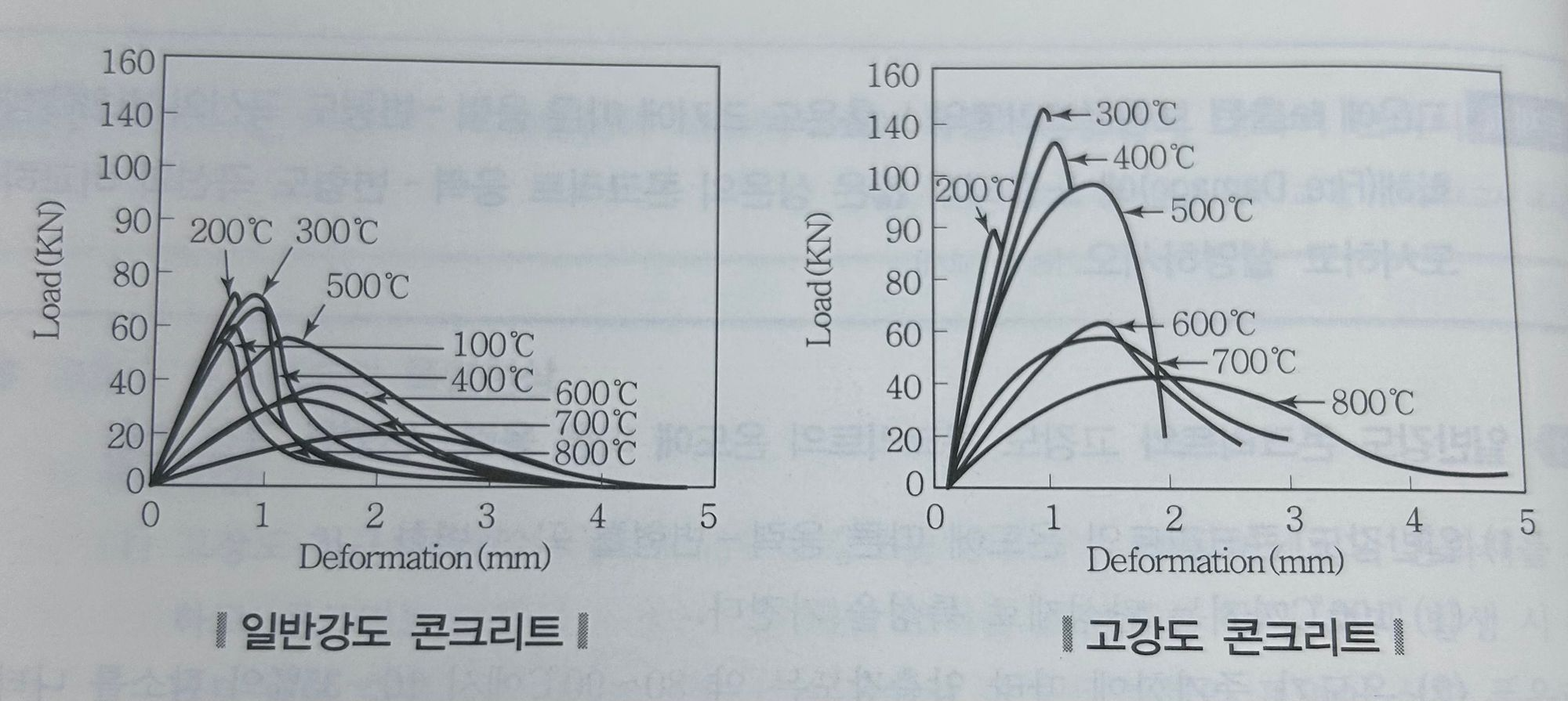 - 300도 까지 가열될 경우 초기압축강도에서 10~20% 정도 강도저하가 발생한다.