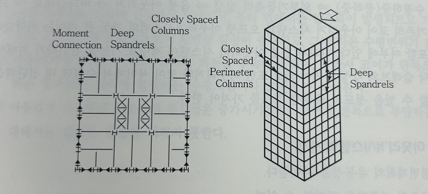 - 외측기둥이 수평하중에 모두 저항하기 때문에 구조적인 효율성이 높다.