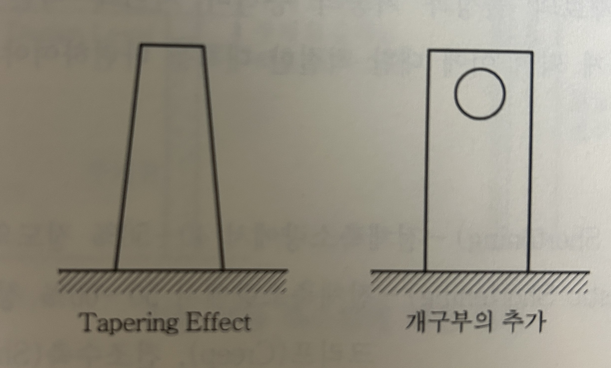 - 높이에 따라 평면에 변화를 주거나 상부로 올라갈수록 평면의 크기가 줄어드는 경우 풍직각방향 성능이 증가한다.(Tapering Effect)