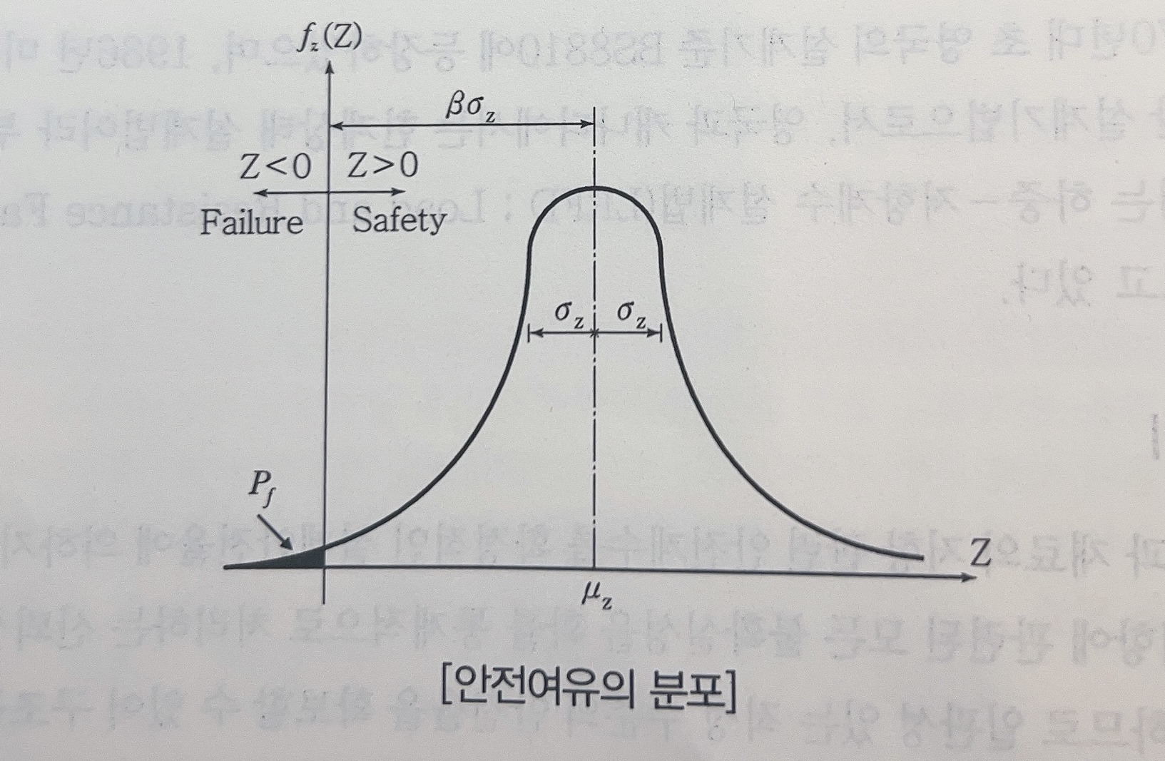 - 구조 부재의 안전도 : 랜덤 변량인 안전여유 Z=R-S에 의해 좌우