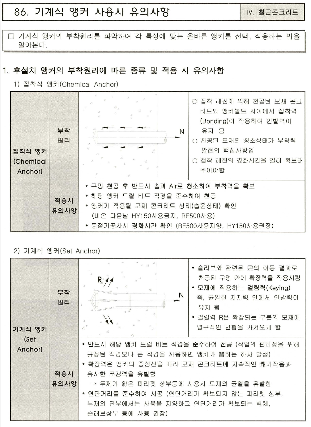 후설치 앵커의 접착식앵커, 기계식 앵커에 대해 설명하시오.