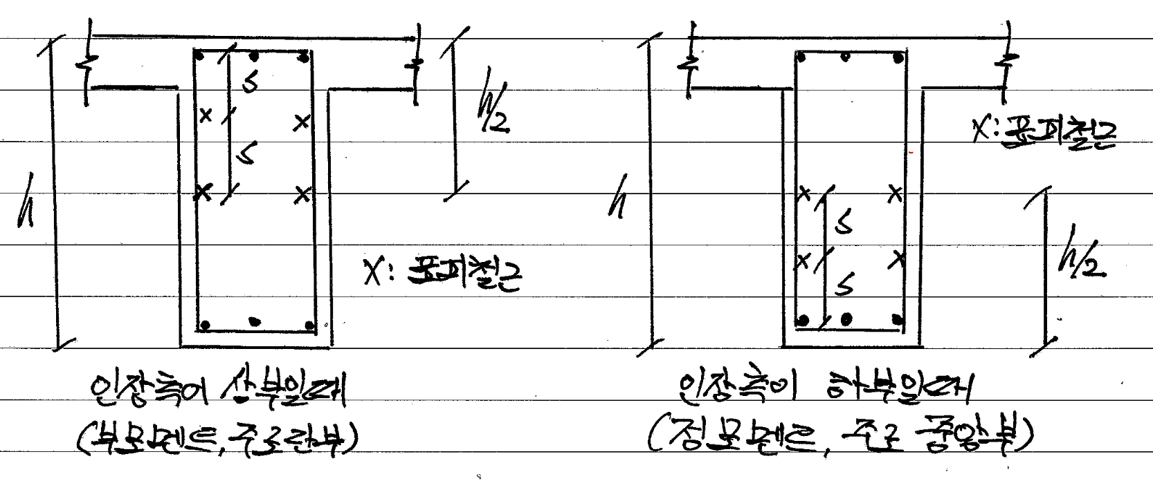 - 표피철근을 배치하지 않으면 복부의 균열폭은 휨인장철근이 배치된 위치의 균열폭보다 더 클 수 있다.