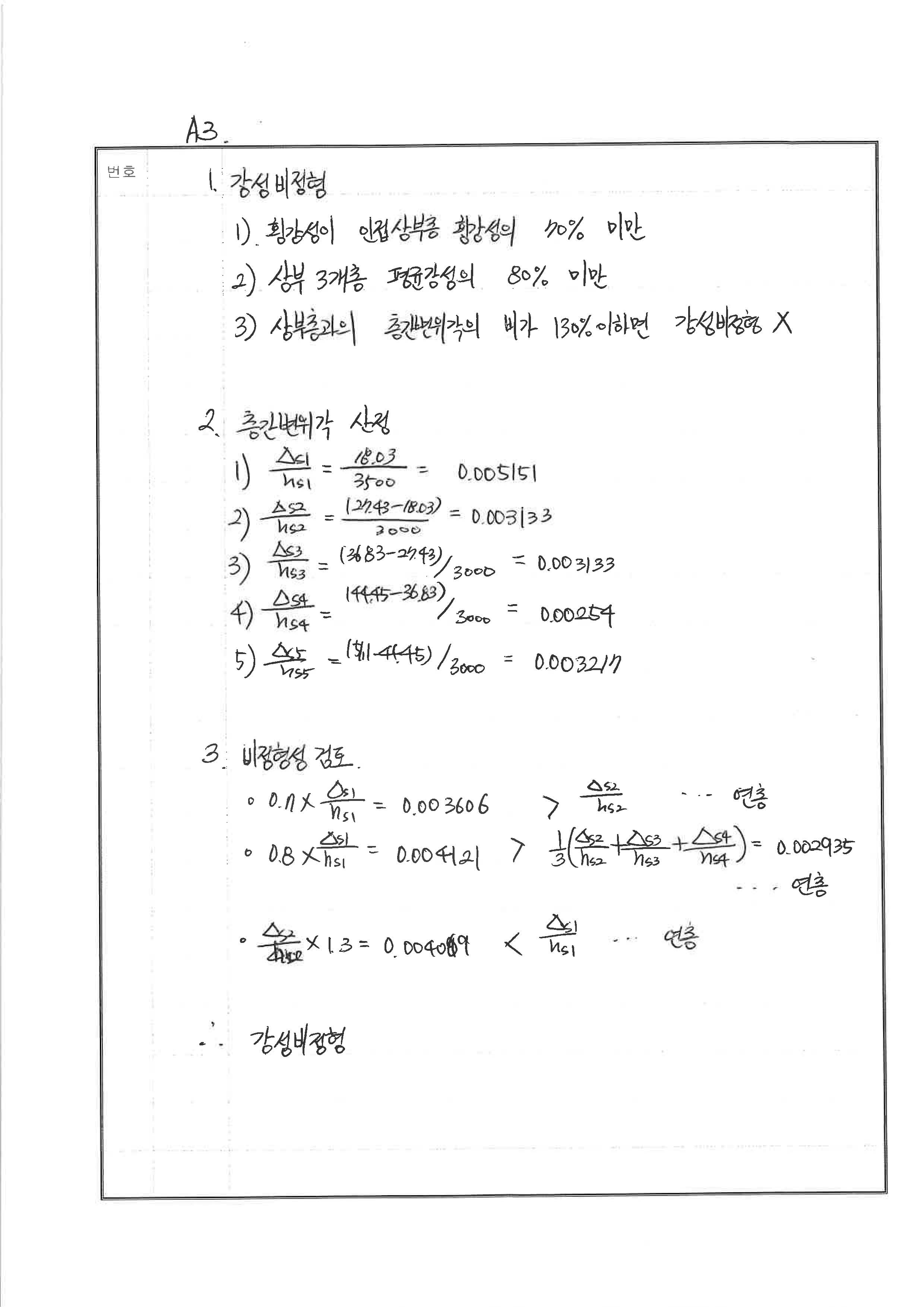 START 서브노트 문제: A3. 구조물의 수직비정형 판단 역학 및 하중시스템 3-96 정답: END 관련문제 table without id file.link as "문제번호", tags, 중요, 반복도, 풀이 from "(11) 문제모음" Where contains(관련노트,[[A3. 구조물의 수직비정형 판단]]) sort 중요 desc