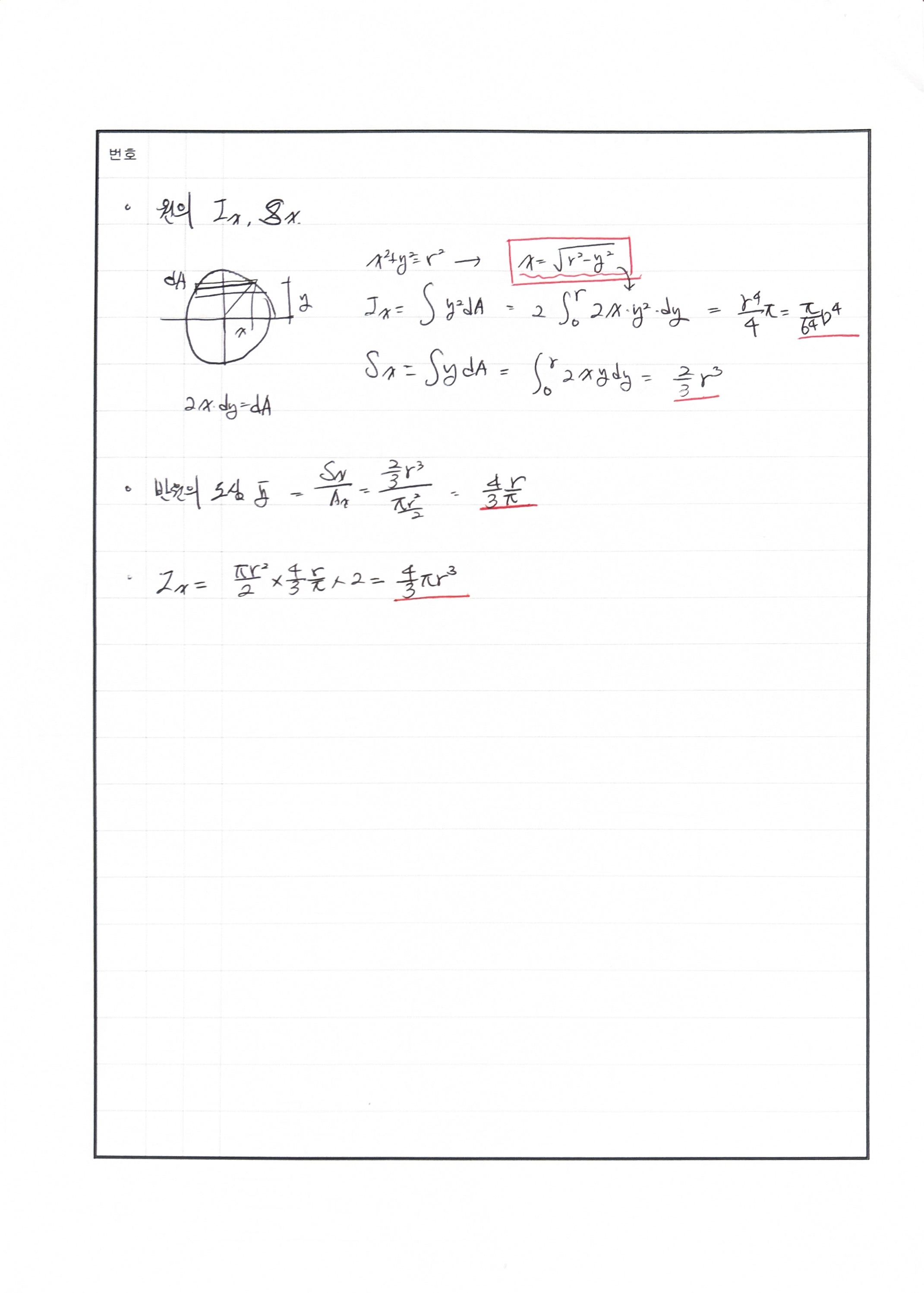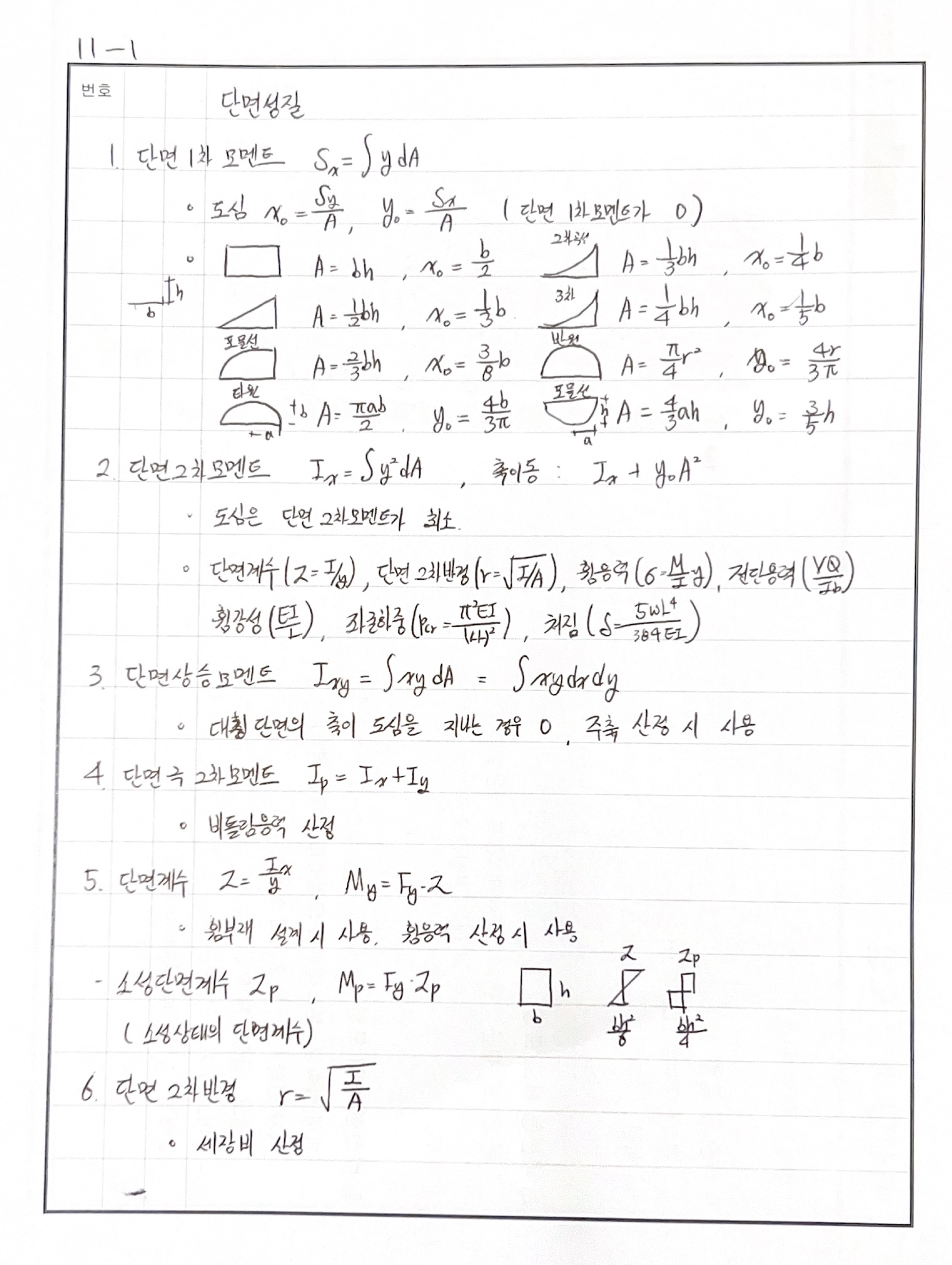 - 도심산정 (도심축의 단면1차모멘트는 0)