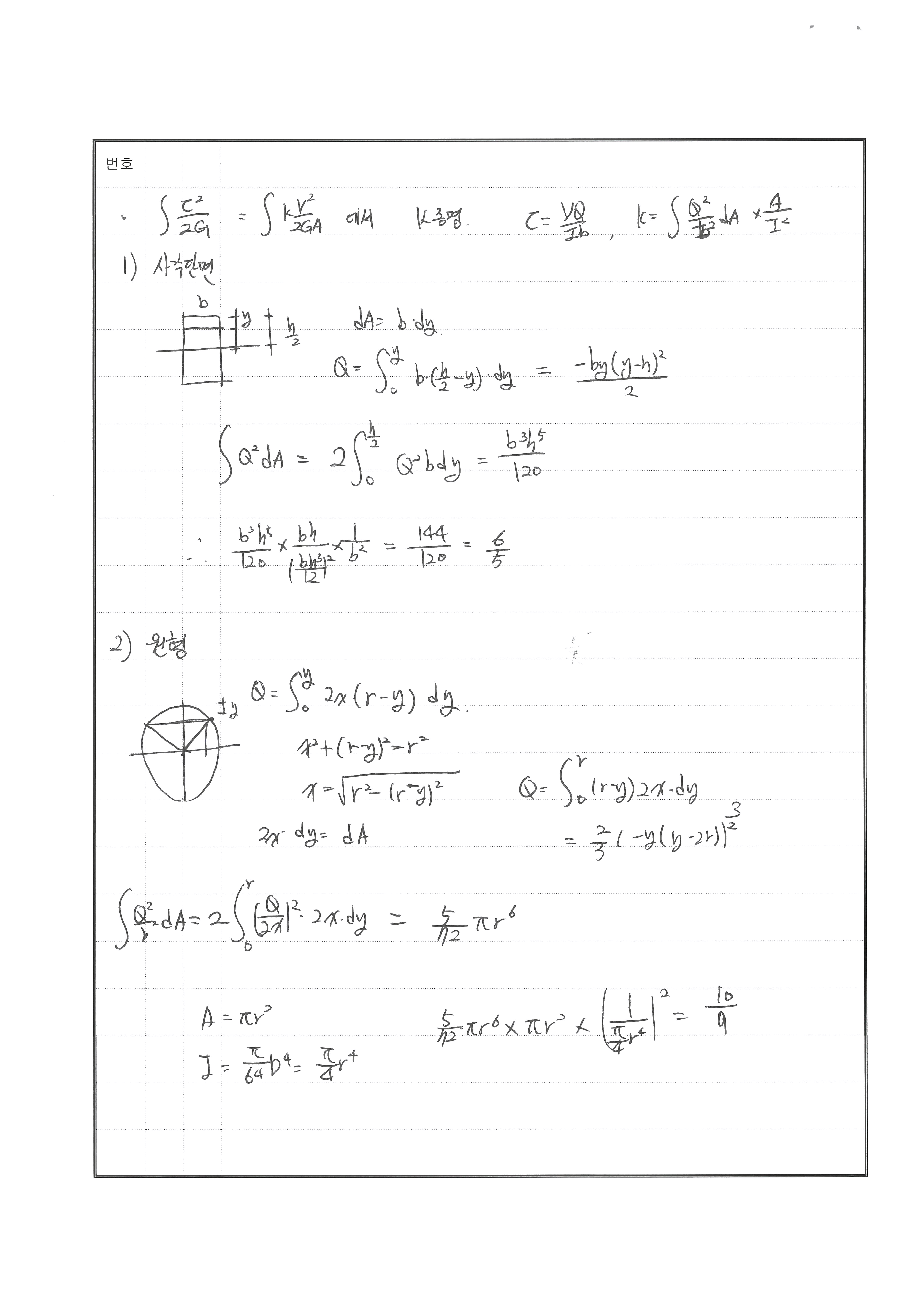 전단형상계수 (에너지) : 사각 6/5 원형 10/9 중공원형 2