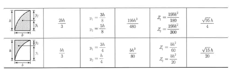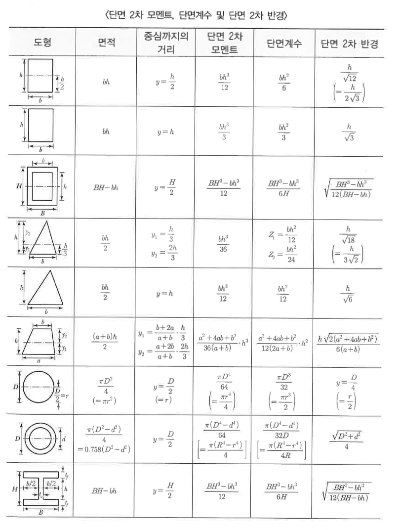 도형별 2차모멘트, 단면계수, 단면2차반경