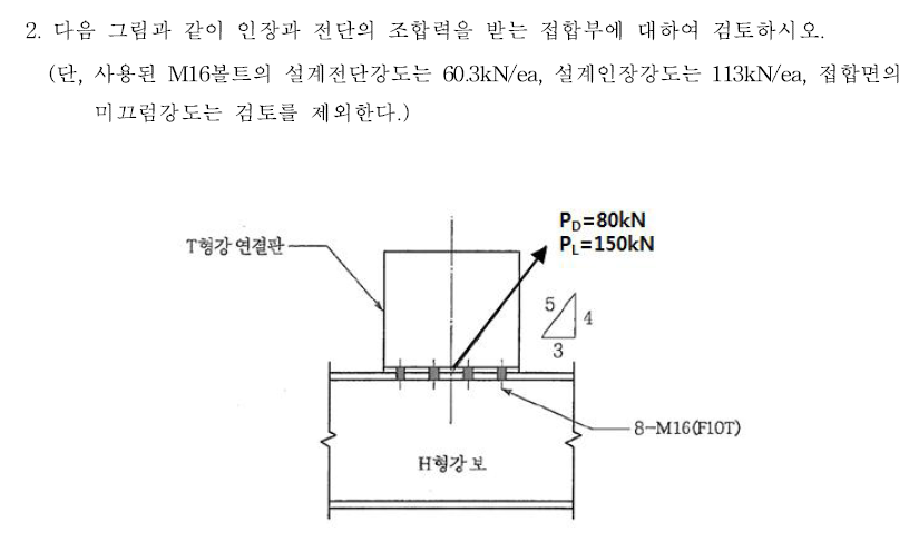 인장과 전단의 조합력을 받는 접합부에 대해 검토