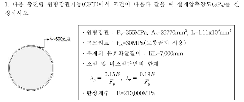 중요::4 풀이::XO 반복도::7 설명::충전형 합성기둥의 안전성 검토 (원형)