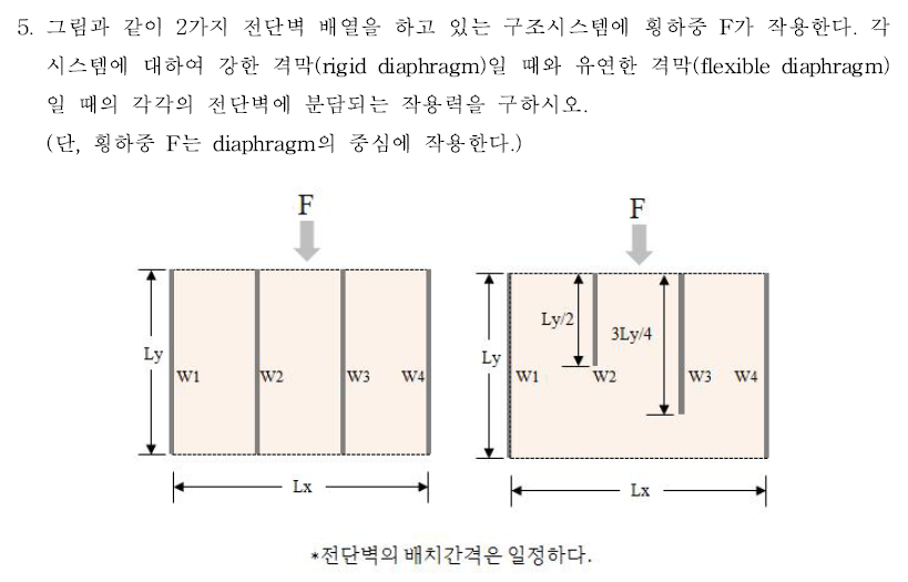 강한 격막과 유연한 격막일 때의 전단벽에 분담되는 작용력 산정