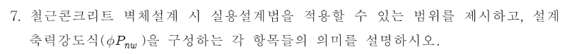 벽체설계 시 실용설계법을 적용할 수 있는 범위 제시, 설계축력강도식의 항목의 의미 설명