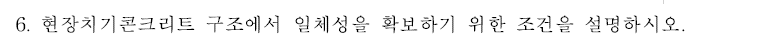 현장치기콘크리트에서 일체성을 확보하기 위한 조건 설명