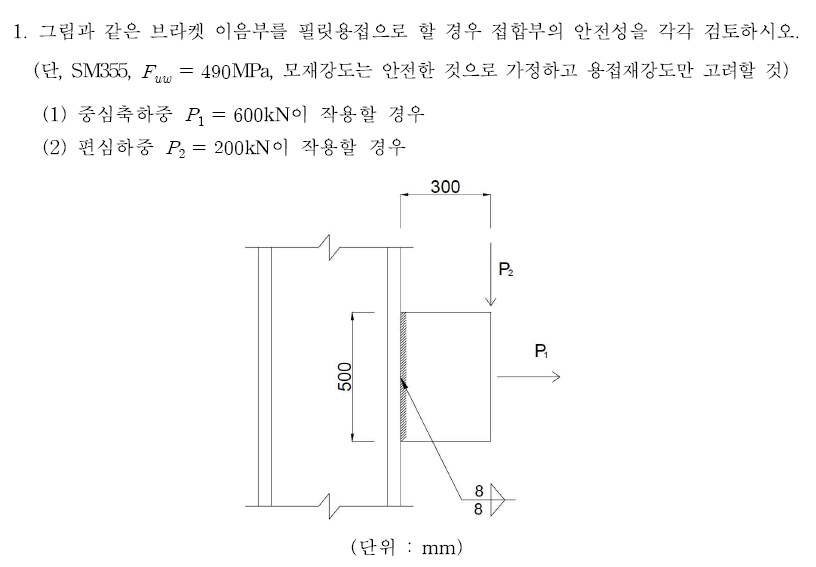 브라켓 이음부를 필릿용접으로 할 경우 접합부의 안전성 검토