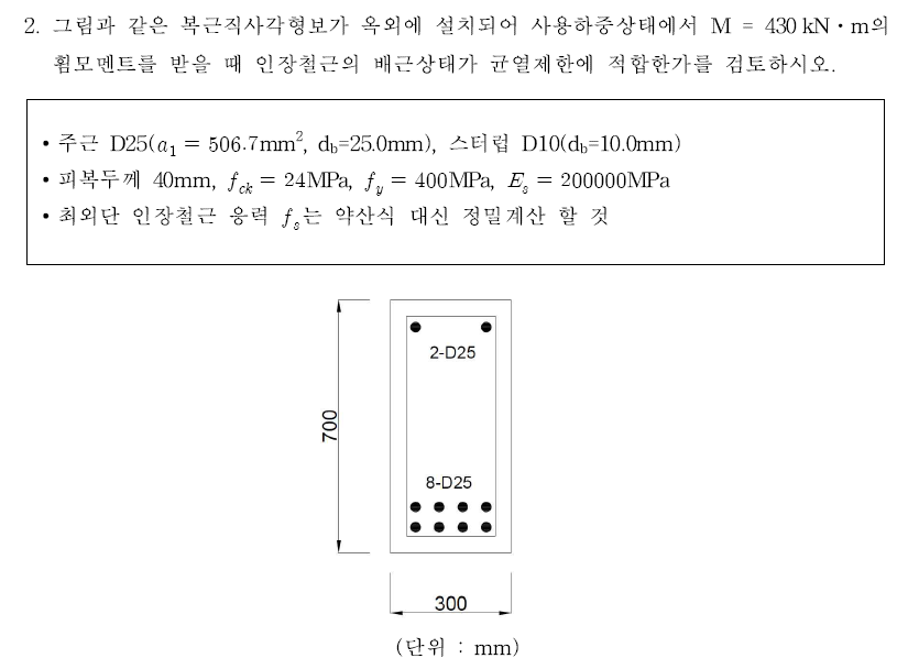 중요::3 풀이::XO 반복도::7 설명::복근보 인장철근의 배근 검토