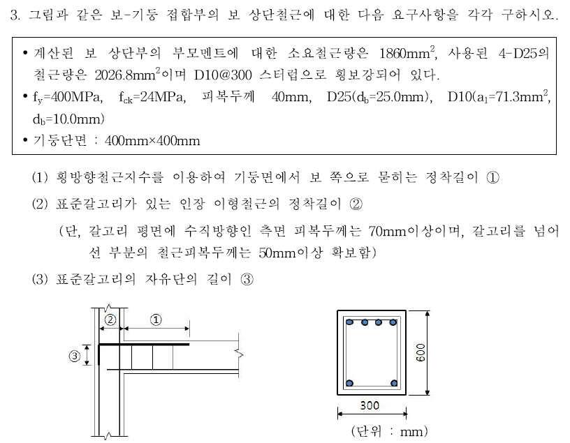 중요::3 풀이::△X 반복도::7 설명::기둥-보 접합부의 정착길이 산정