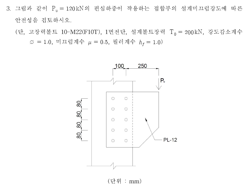 편심하중이 작용하는 접합부의 설계미끄럼강도의 안전성 검토