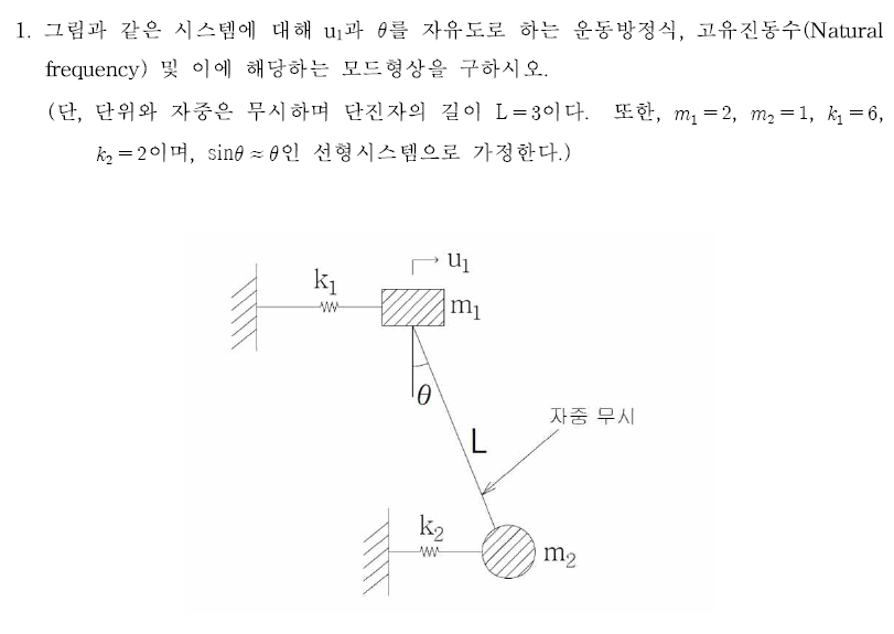중요::6 풀이::XXX 반복도::10 설명::구조물의 고유진동수 및 모드형상 산정 내가 명확하게 이해할 수 있는 정답 필요 난이도 너무 높음