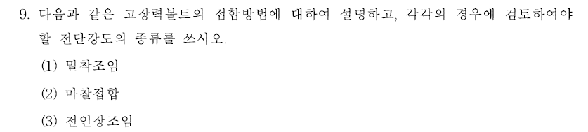 고장력볼트의 접합방법 설명(밀착조임, 마찰접합, 전인장조임)