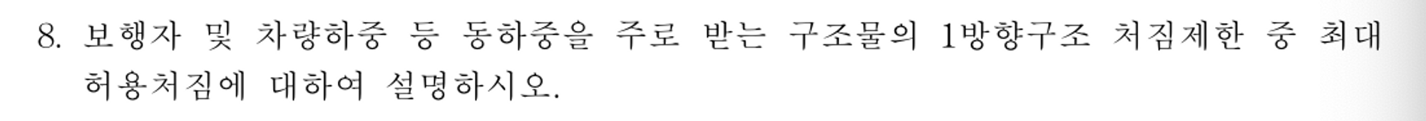중요::2 풀이::O 반복도::2 설명::동하중을 받는 구조물의 1방향구조 처짐제한 설명