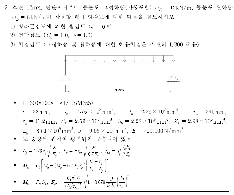 중요::4 풀이::OX 반복도::7 설명::H형강의 휨과 전단 검토