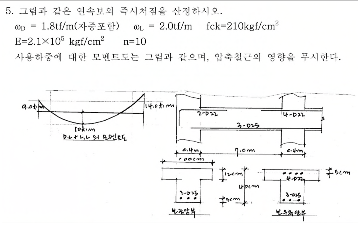 중요::4 풀이::XO 반복도::6 설명::연속 T형보의 즉시처짐