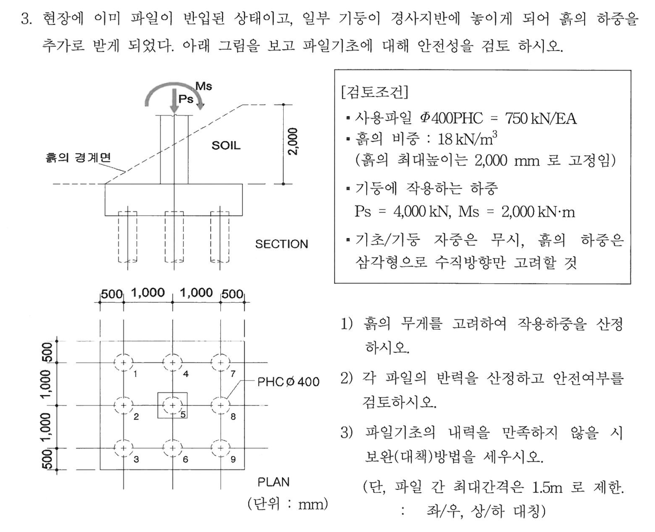 중요:: 풀이:: 반복도:: 설명::편심하중을 받는 말뚝기초의 설계