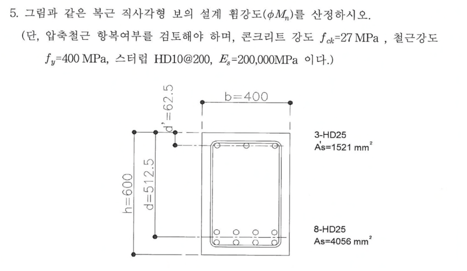중요:: 풀이:: 반복도:: 설명::복근보의 휨강도 산정