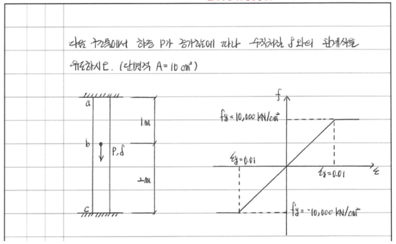 중요::3 풀이::O 반복도::7 설명::축하중을 받는 부재의 하중변위관계