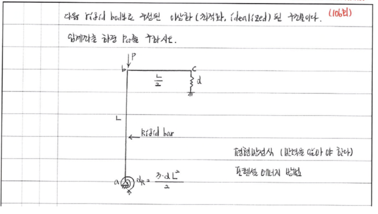 중요::4 풀이::O 반복도::8 설명::강체구조물의 임계좌굴하중