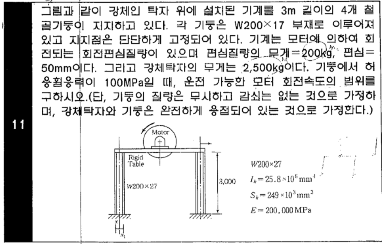 중요::5 풀이::X 반복도::10 설명::회전편심질량+단자유도의 동적응답