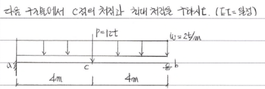 중요::3 풀이::X 반복도::8 설명::부정정구조물의 처짐과 최대처짐