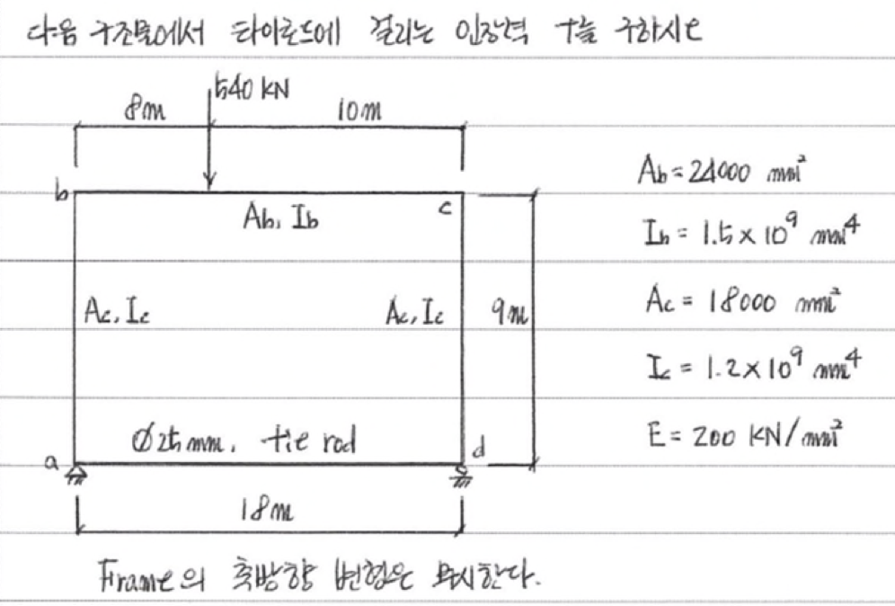 중요::4 풀이::O 반복도::8 설명::복합골조(타이로드)에 걸리는 인장력
