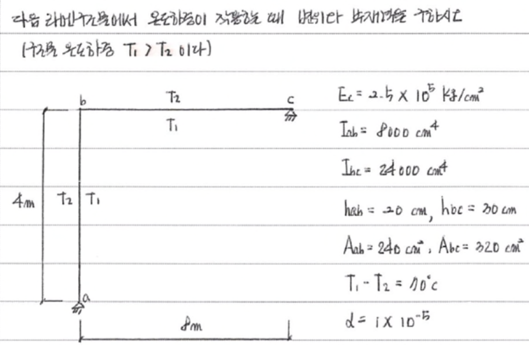 중요::3 풀이::O 반복도::8 설명::부정정구조물의 해석, 온도변화