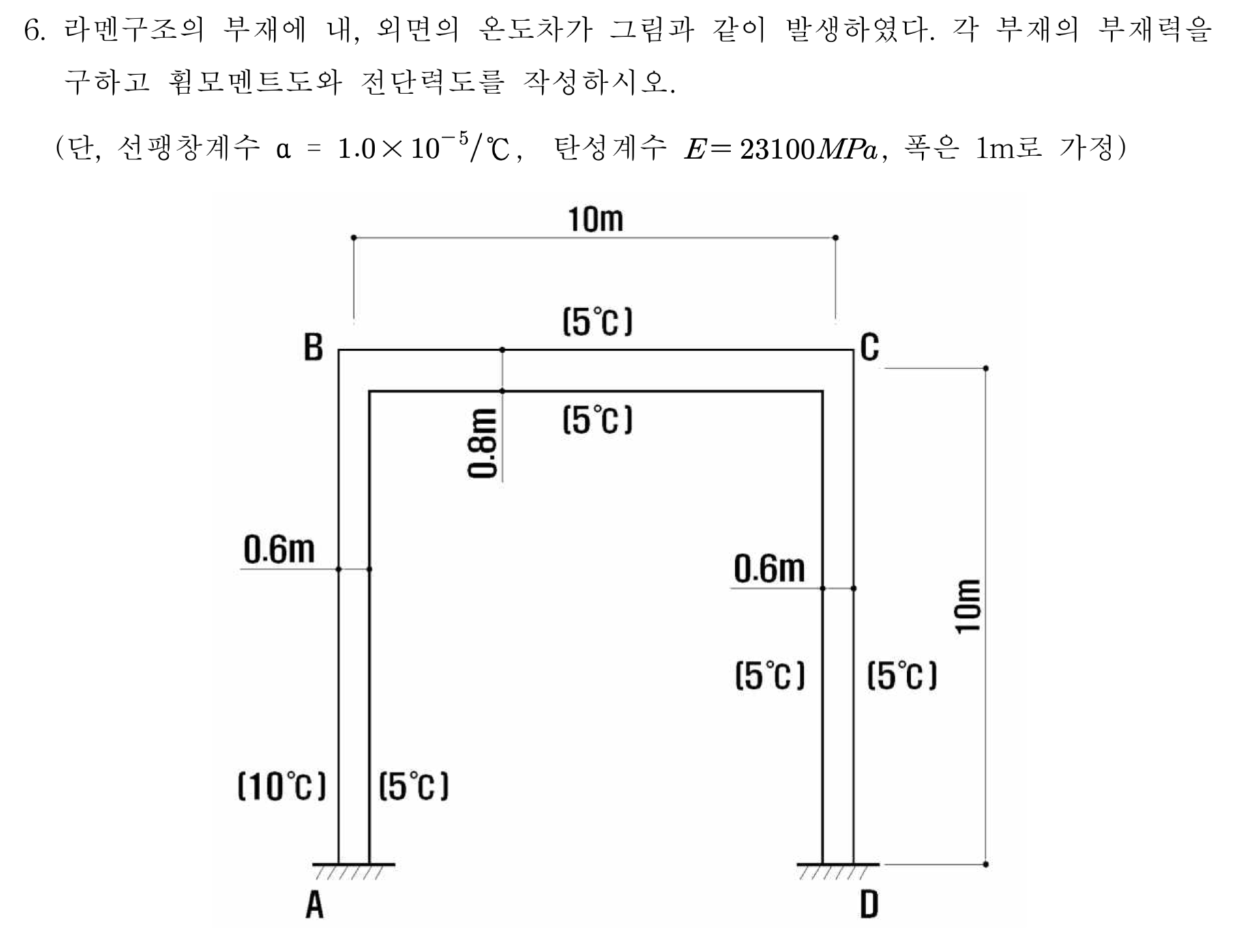 중요::5 풀이::X 반복도::10 설명::부정정골조의 온도변화