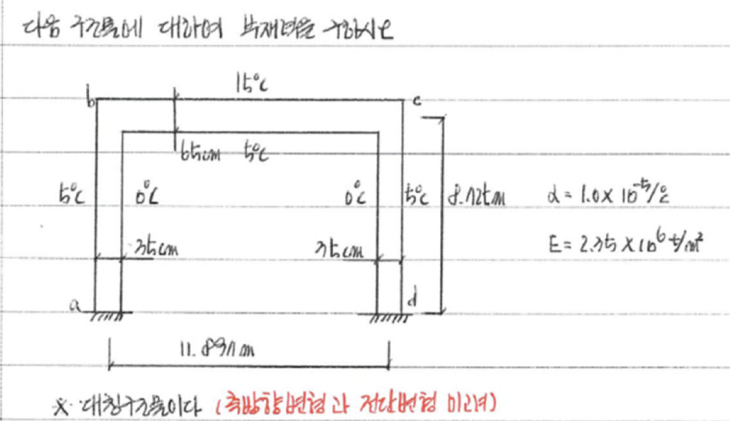 중요::4 풀이::△ 반복도::9 설명::부정정골조의 온도변화